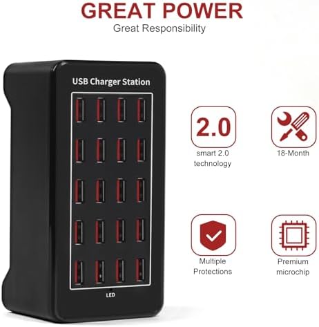 20-Port 100 W(20 A) Multiple USB Charger Station,RISWOJOR Multiport USB Charging Station with Intelligent Detection, Compatible with Smartphones, Tablets, and More Devices