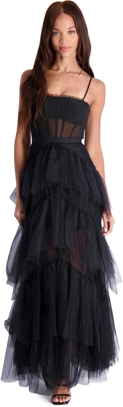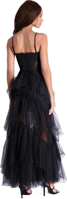 BCBG Max Azria Oly Women’s Tiered Ruffle Tulle Sleeveless Corset Evening Gown