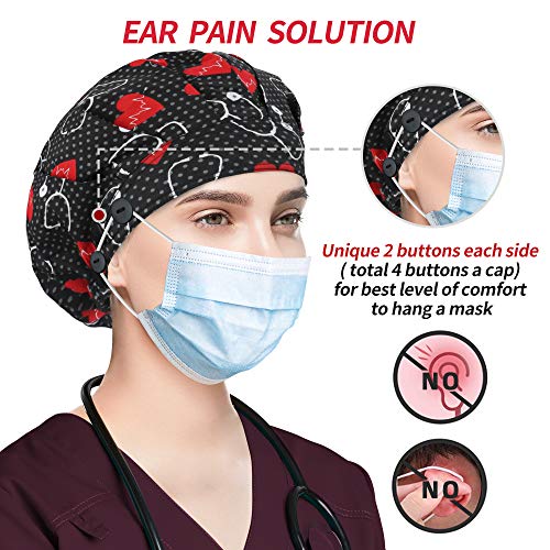 ABAMERICA 2 Pack Bouffant Caps with Button and Sweatband, Adjustable Scrub Caps for Women Men, One Size Fits All