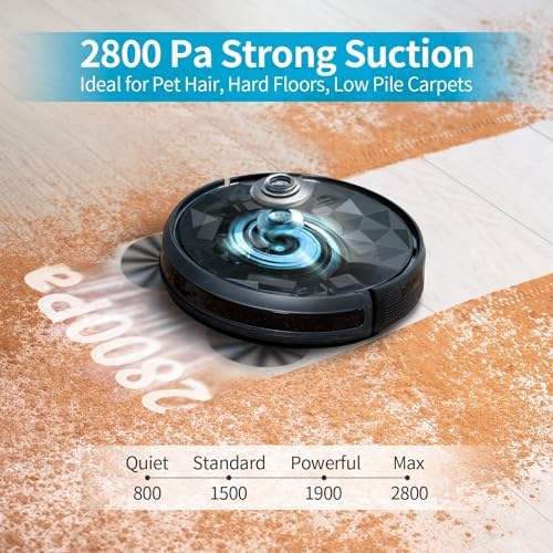 AIRROBO Robot Vacuum Cleaner - Robotic Vacuums with 2800Pa Suction Power, Ideal for Pet Hair, Hard Floors, and Low Carpets - Self-Charging, App Control - 120 Minutes Runtime.