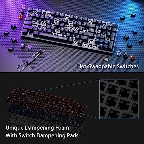 ROG Strix Scope II 96 Wireless has one silicone dampening layer for the bottom housing, and another dampening layer on top of the PCBA that has integrated switch-dampening pads underneath each switch to eliminate pinging and echoes.
