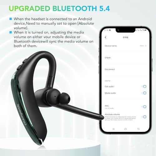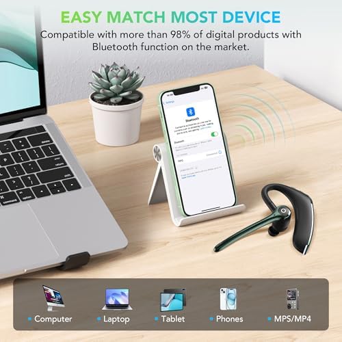 Bluetooth Headset, Wireless Bluetooth Earpiece with ENC Noise Canceling Mic