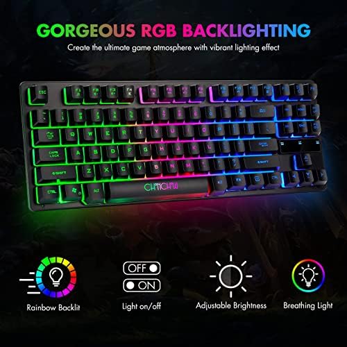 CHONCHOW 87-Key RGB Backlit Compact Gaming Keyboard - USB Wired Tenkeyless Keyboard for Laptop, PS4, Xbox, PC Gaming and Work