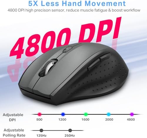 E-YOOSO Wireless Mouse for Laptop, Portable Optical Computer Mouse, 6 Buttons, Cordless 2.4GHz with USB Receiver, 5-Level 4800 DPI, 18 Months Battery Life for PC Chromebook Windows Mac