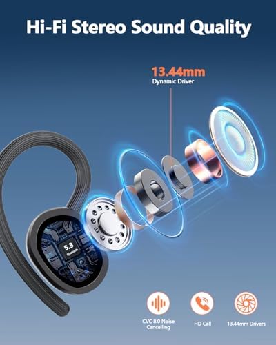 Ear Buds Wireless Bluetooth Earbuds Sport 2025 New Bluetooth 5.3 Headphones with LED Display 128H Playtime Powerful Bass Over Ear Earphones with Earhooks IP7 Waterproof for Gym/Running/Workout