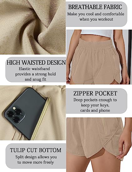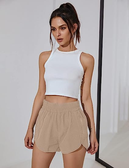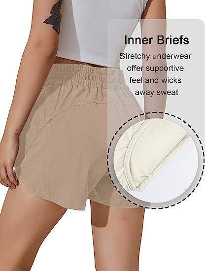 BMJL Women's Running Shorts Elastic High Waisted Shorts Pocket Sporty Workout Shorts Quick Dry Athletic Shorts Pants