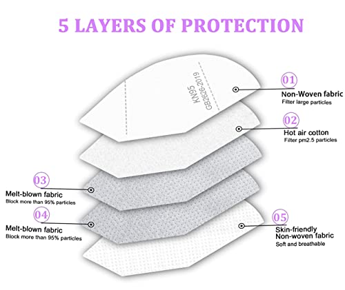 KN95 Face Mask 50 Pcs, 5-Ply Breathable KN95 Masks, Filter Efficiency≥95% Against PM2.5, Individually Wrapped, Disposable White Face Masks