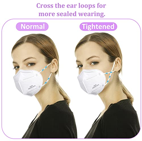 Sengtor KN95 Face Masks 50 Pack 5-Ply Breathable Protection & Extra Wide Elastic Ear Loops Design, 95% Filtration Efficient XIKII Disposable KN95 Masks,White