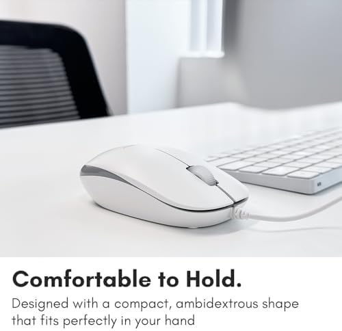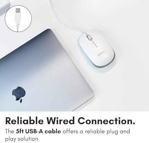 Macally USB Wired Mouse for Mac and Windows - Plug and Play 3 Button Corded Computer Mouse Wired for MacBook Pro/Air, Apple iMac, Laptop, PC Desktop, Notebook, Scroll Wheel Layout with Long Wire Cord