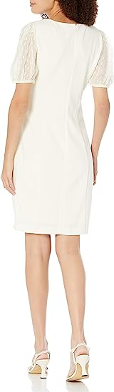DKNY Women's Scuba Crepe Clip Box Lurex Chiffon Mixed Media Shealth Dress