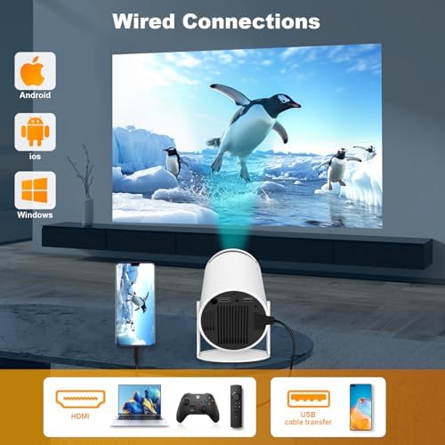 Mini Projector, HY300 PRO Portable Projector, Support 4K 1080P with Dual-Band WIFI6 5G Wireless 5.0 Bluetooth Android 13, 180° Rotatable, Auto Keystone Correction, 40"-130" Screen Video Projector