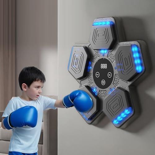 Music Boxing Machine,Smart Bluetooth Music Boxing Machine,5 Speed Mode Counting Musical Boxing Machine with Gloves,Wall Mounted Boxing Training Equipment USB Charging for Kid Adult