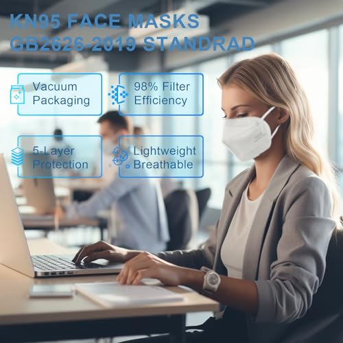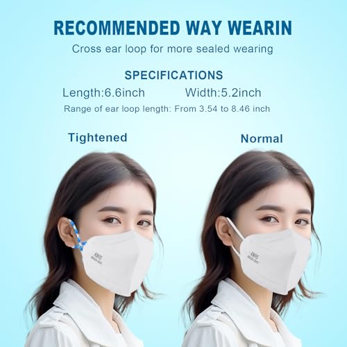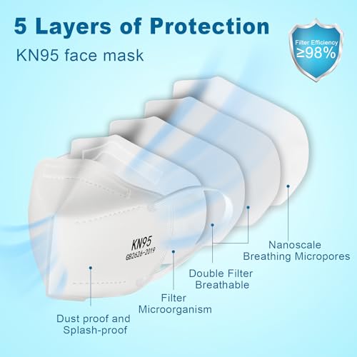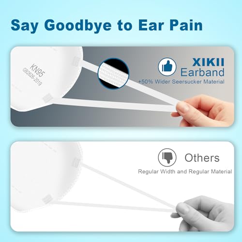 Sengtor KN95 Face Masks 50 Pack 5-Ply Breathable Protection & Extra Wide Elastic Ear Loops Design, 95% Filtration Efficient XIKII Disposable KN95 Masks,White