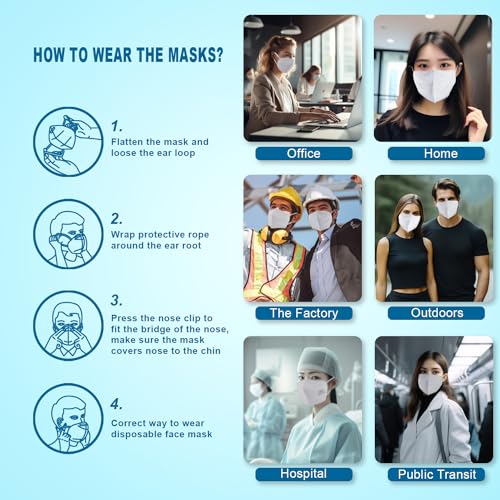 2. Easy to Use - Hold the elastic bands over your ears and press the metal strip around your nose to create a light seal around your face.
