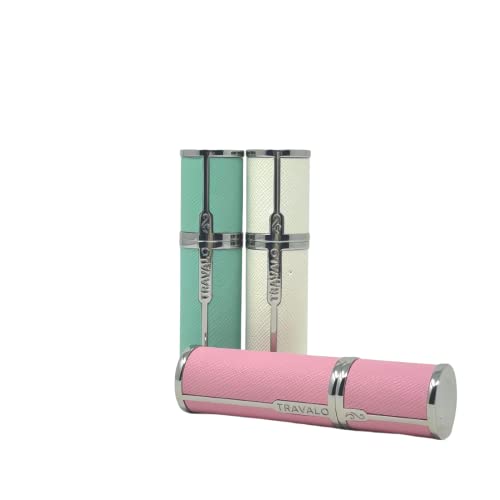 Travalo Milano Perfume Atomizer Bundle Refill System TSA Approved | Reusable Easy Fill Mini Pump Sprayer Lightweight Portable Vegan Leather w/Polished Metal | White, Aqua, Perfect Pink | 3 Pack 0.17oz