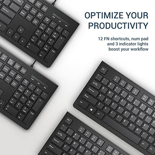 Wired Keyboard, Ultra-Thin USB Wired Computer Keyboard, Low-Profile Keys, Spill-Resistant, Multimedia Keys, Compatible with Windows, Mac, Chrome, Linux, and Android-Black